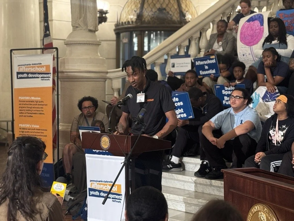 In addition to engaging directly with legislators, participants attended a press conference where thirteen students of all ages spoke from the heart about how much their program meant to them. A student from Allegheny Youth Development (AYD) shared that the afterschool program supported his learning in math and improved his grades. The student continued on to share with the world of the program’s impact on not only his academics, but also his experience making friends. “It also helped me with my social skills and really helped me get out of my comfort zone,” the student shared.